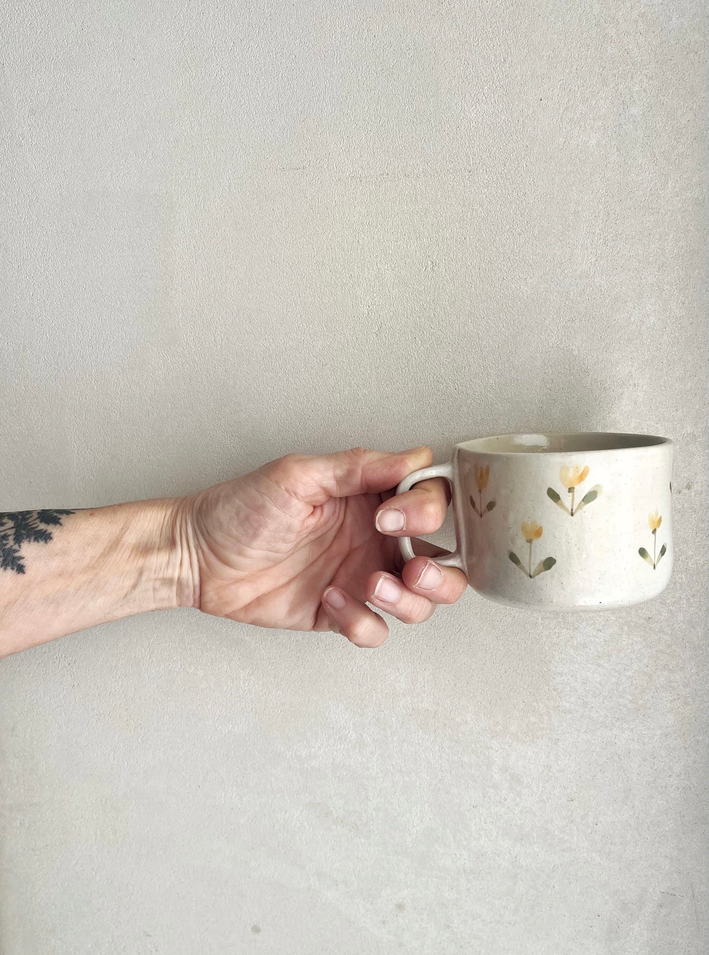 If you are a "mountain" soul you'll choose the pine cup, if you are a "garden" soul you'll pick the tulip or strawberry cup! Enjoy your coffee and cappuccino in these super versatile cups (dia. cm 8 h 6 210 ml), dishwasher and microwave friendly. Sand stoneware, transparent glaze, hand-decorated. Each piece is unique.